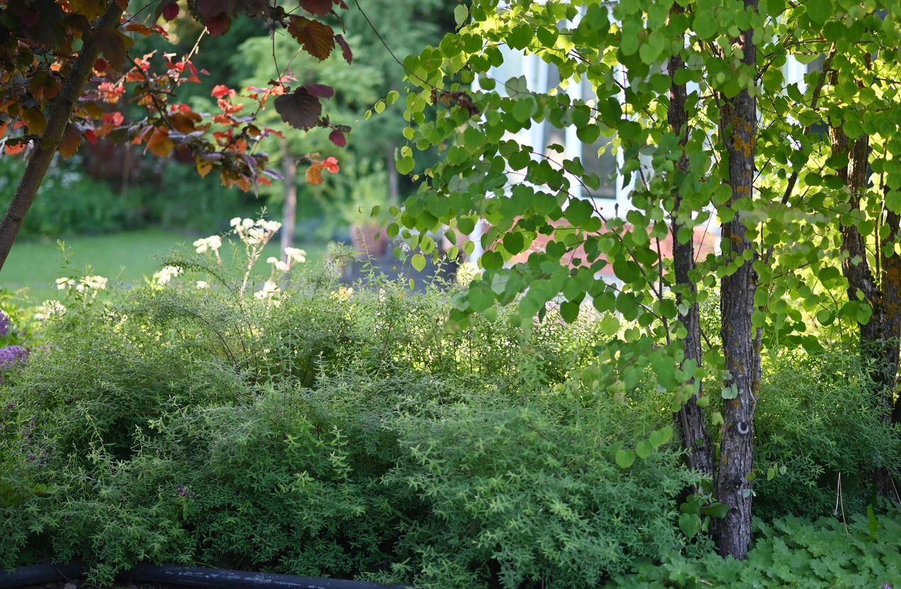 Сад очень помогает в работе. Я наблюдаю за собой и за ним – что чувствую в каждый сезон, куда смотрю, чего хочу. Поняла, что крайне важен баланс диковатости и строгости –поэтому все шалости у меня за бордюром – моей границей «дозволенного», а в них без строгих формованных «якорей» никак, поэтому ввела несколько таких у себя. Обязательно сажаю много первоцветов – как же они радуют после зимы!
